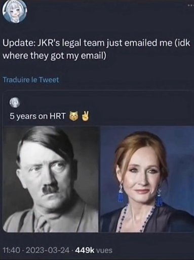 She literally allies herself with Nazis because they share her TERF beliefs. In my book, if your friends are Nazis, you’re a Nazi.