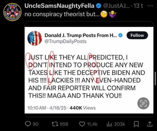 Be hilarious if Trump were actually clever enough for this, and we go back through his tweets and he’s just fucking crying for help in code the whole time.