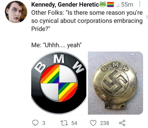 Unlike the Nazis, no one is forcing them to embrace pride. They do it because they think it’s a profitable demographic.
