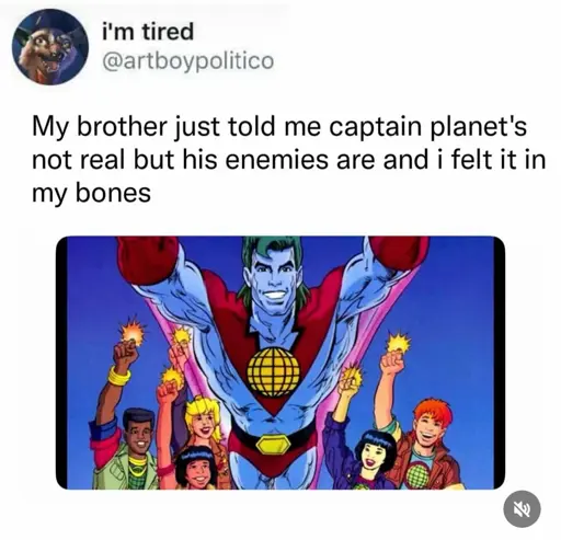 Captain Planet’s enemies are now running the world and openly dismantling environmental protections like it’s a matter of pride to them. And half the people that grew up watching Captain Planet voted them in.