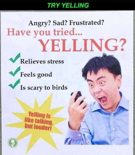 Birds fucking love yelling. If you want to be a parrot’s best friend, start yelling at them. They think that shit’s hilarious.