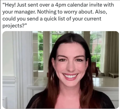 I think it messed with their plans to lock me out of everything after the meeting. Must be logistically challenging lining up all those layoff meetings. 🙄