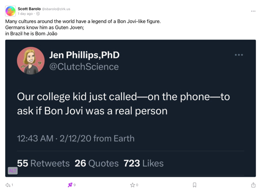 Bon’s a minor deity here in NJ as compared to our patron deity Bruce, peace be upon his name.