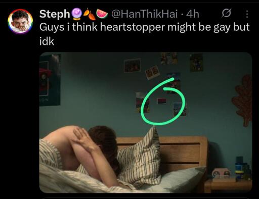 I was thinking that the post is a joke, with the joke being that someone is trying to find some tiny clues about the show is gay, meanwhile there’s literally two men fucking in the pic.
