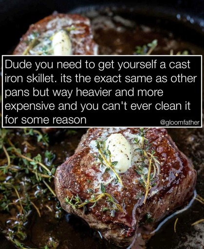 But I do agree they’re better for cooking because of the insane heat retention. I love mine. I have a whole set from small to large. Steaks come out perfect every time.