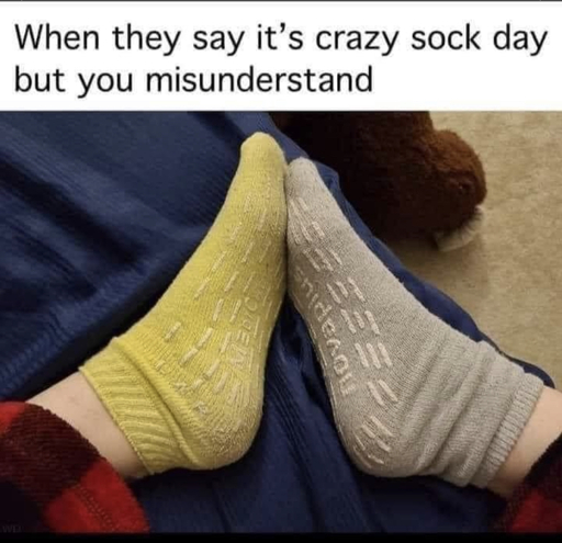 I thought mental facility socks usually had the grips on all sides so you didnt have to worry about them being put on the right way. Or is that just for the extra special sillies?