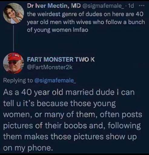 I’m not really the demographic (30s married bi lady who’s never followed someone for boobs), but I think I get it.