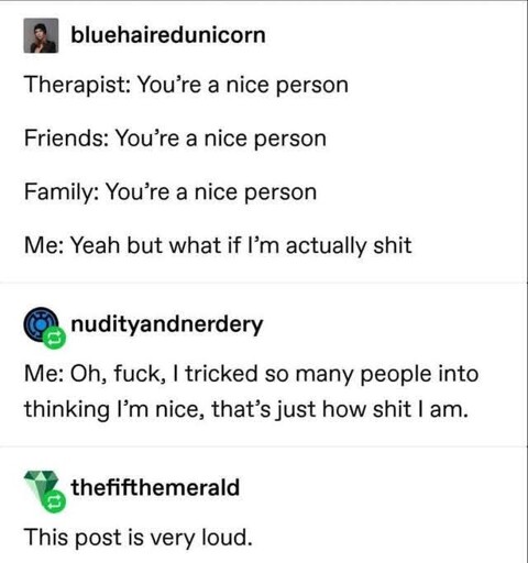 what if i ALSO have a history of abandonment/abuse by friends and have been trained to believe that every relationship of every type is fake and that this is proof that im a test subject of international importance and im also a we and we are screaming at ourselves