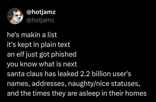 arrow-up1386arrow-down1imageTis the season to be phishinglemmy.worldWugmeister@lemmy.dbzer0.com to 196@lemmy.blahaj.zoneEnglish · 2 months agomessage-square7linkfedilinkfile-text