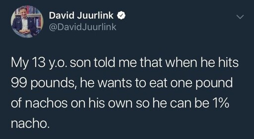 minus-squareCaketaco@lemmy.dbzer0.comlinkfedilinkEnglisharrow-up25·8 days agoWtf they removed the “I’m 1% nacho son” punchline