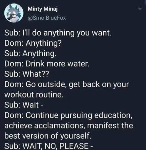 Drinking more water and going to bed at a reasonable time are first two things I have new subs start doing.