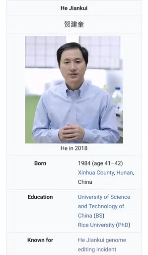 arrow-up177arrow-down1imageHe Jiankui genome editing rulecidentlemmy.blahaj.zonefroufox@lemmy.blahaj.zone to 196@lemmy.blahaj.zoneEnglish · 1 month agomessage-square12linkfedilink