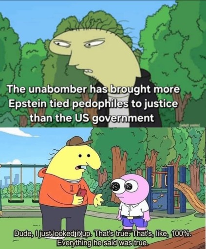 it’s more “I don’t think epstein was active when the unabomber was killing people” so the dead people were visiting the island? Oh , he injured someone that went on to go to epstein island, thus , no time paradox.